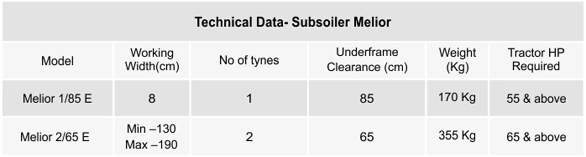 LEMKEN MELIOR SUBSOILER SPECIFICATIONS: